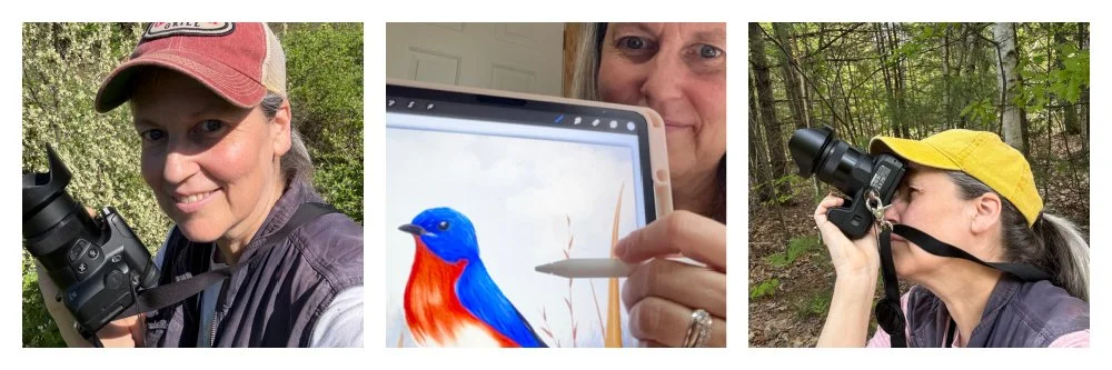Early mornings, evenings, and days off - especially when it’s dark or the weather’s lousy - you’ll often find me at my desk or on my couch making art. I seem to always end up drawn to bird or nature-inspired pieces, often using my own photos as reference. It’s a wonderful way to stay connected to the outdoors when I can’t be outside!