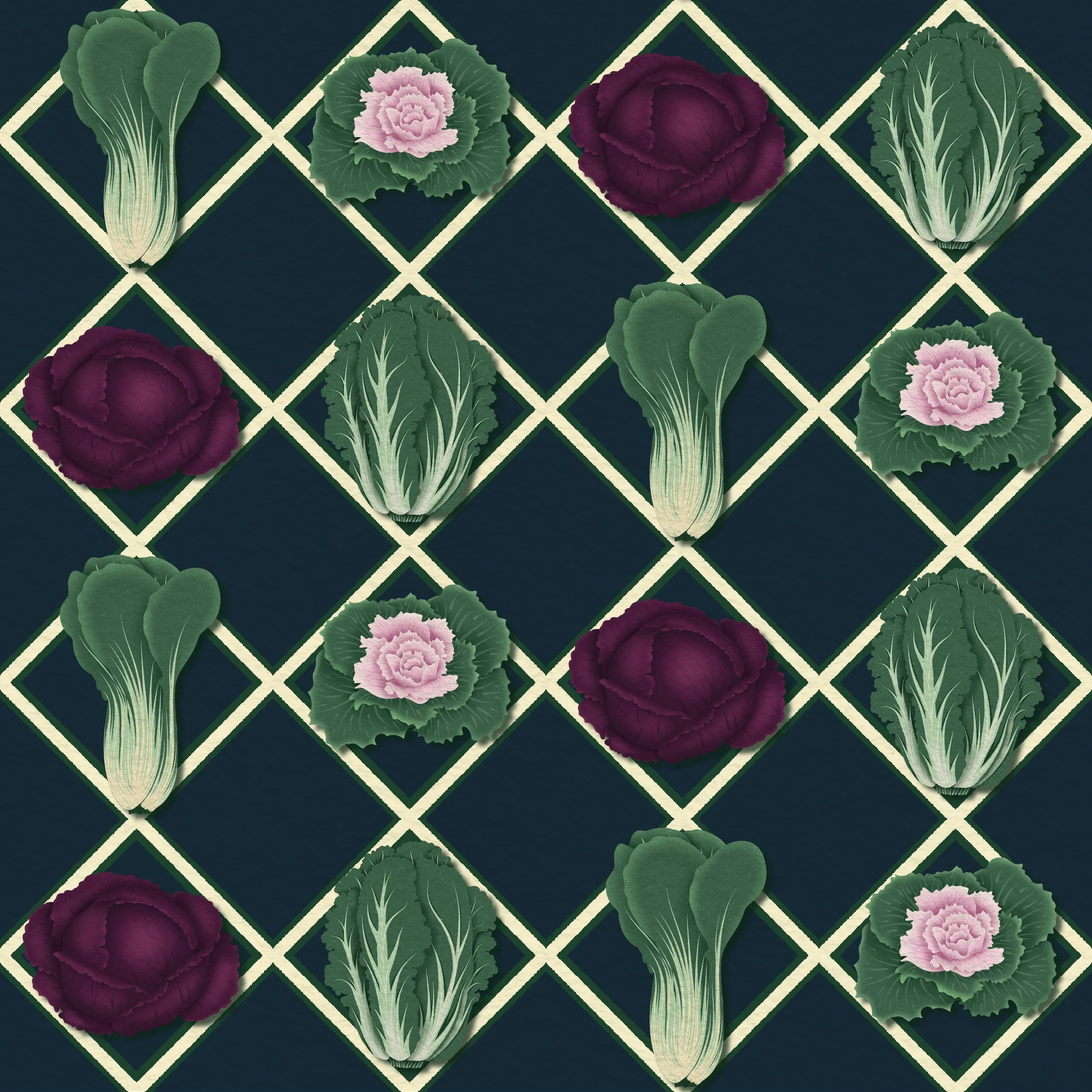 Mockups showing how the Brassicas & Blooms collection translates across a range of products.